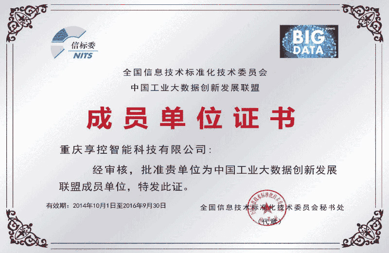 全國信標委批準重慶享控智能科技有限公司為“大數(shù)據(jù)標準工作組全權(quán)成員單位”